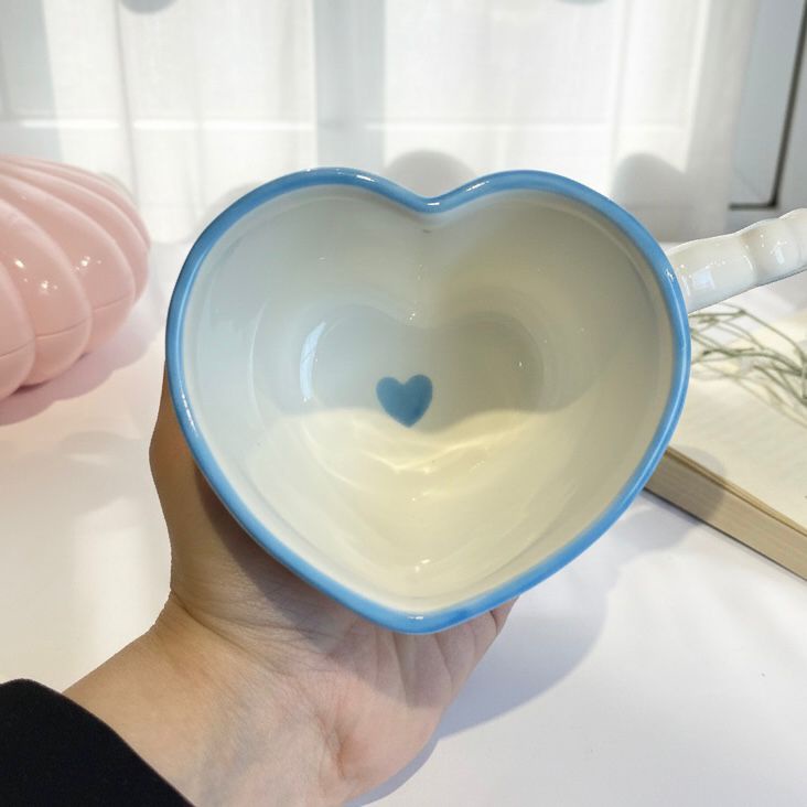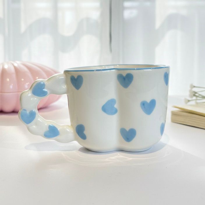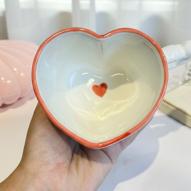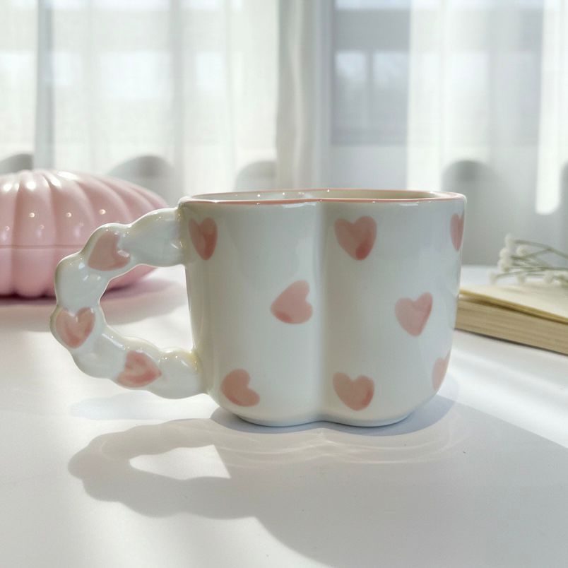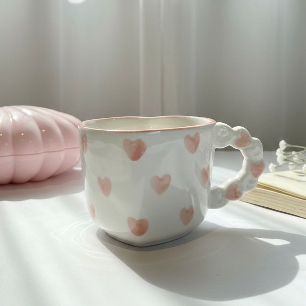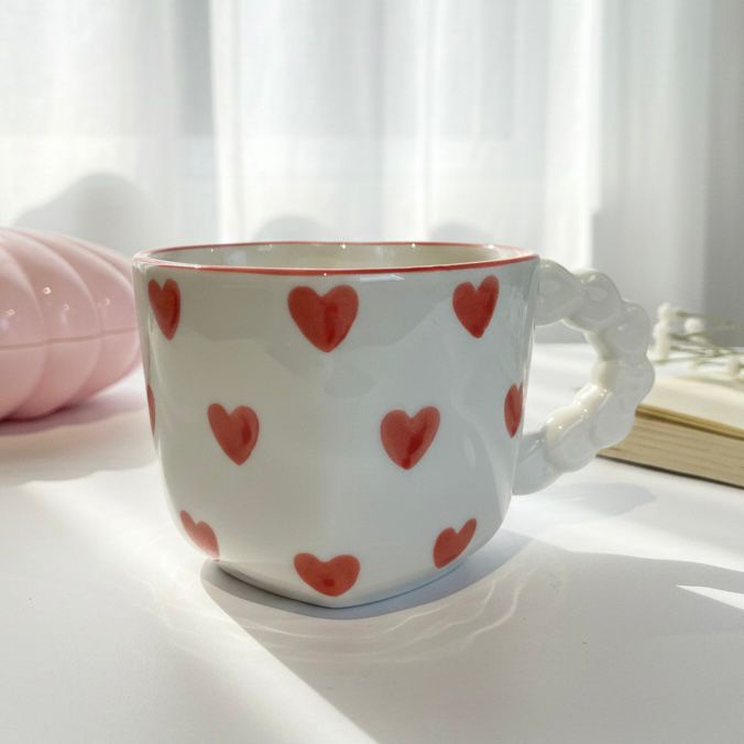 مج عليه رسومات قلوب وجواه قلب صغير لطيف هيبقى هدية مميزة