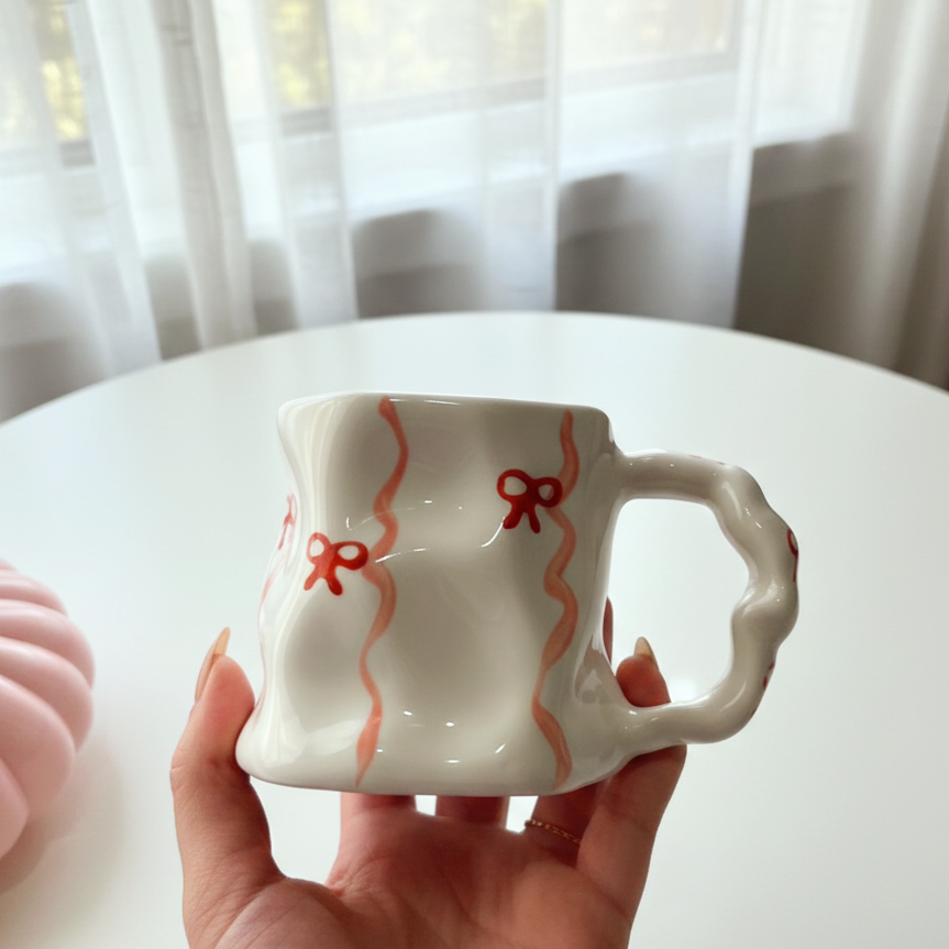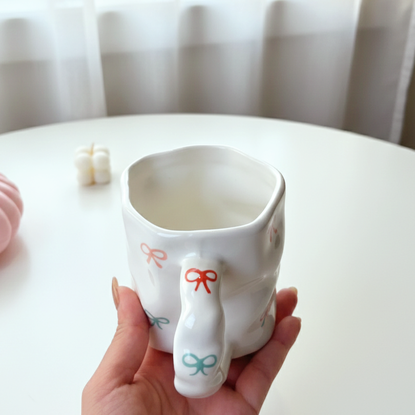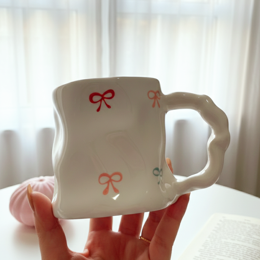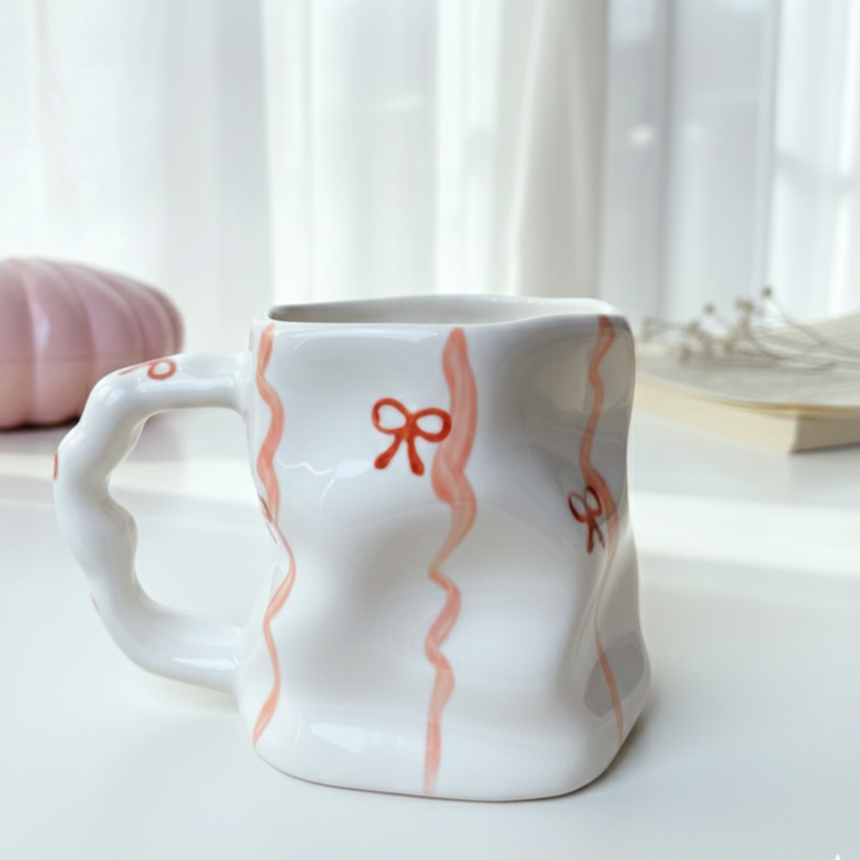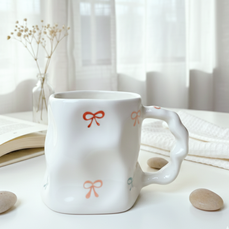 مج رقيق بتعرّجات ناعمة ورسومات لطيفة بتدي إحساس بالانسياب والراحة