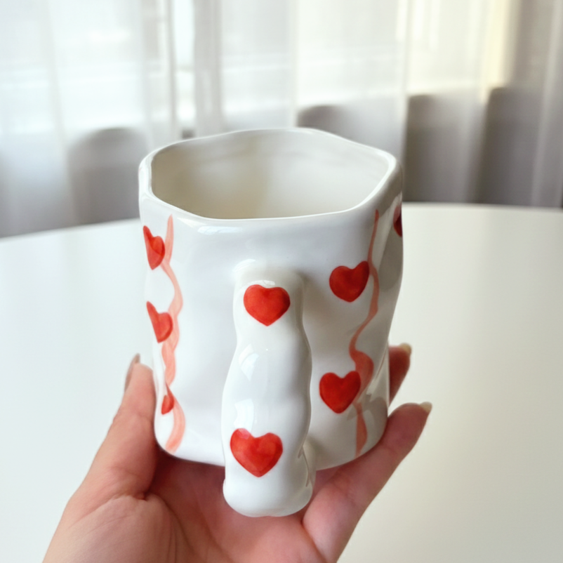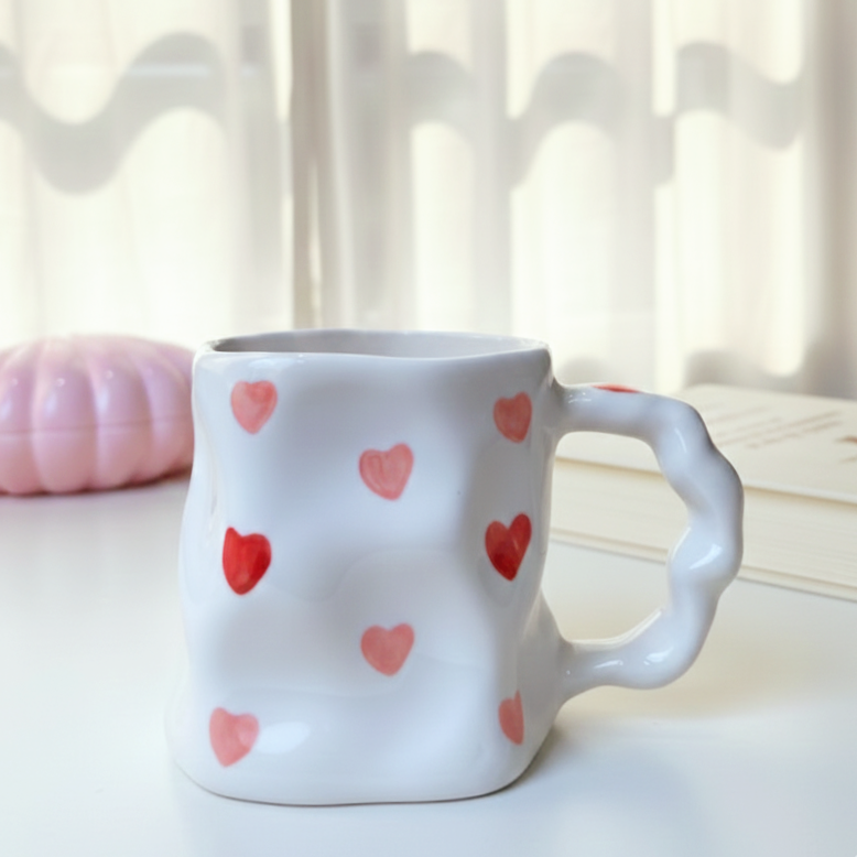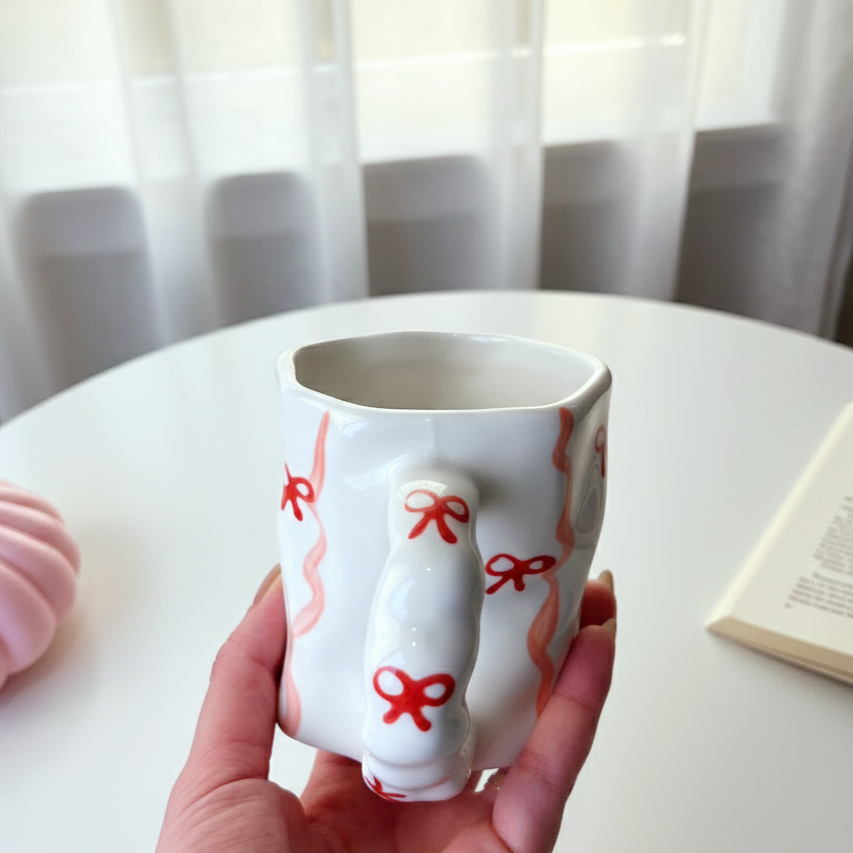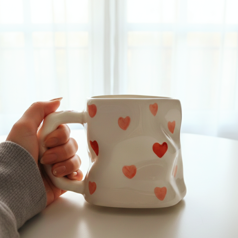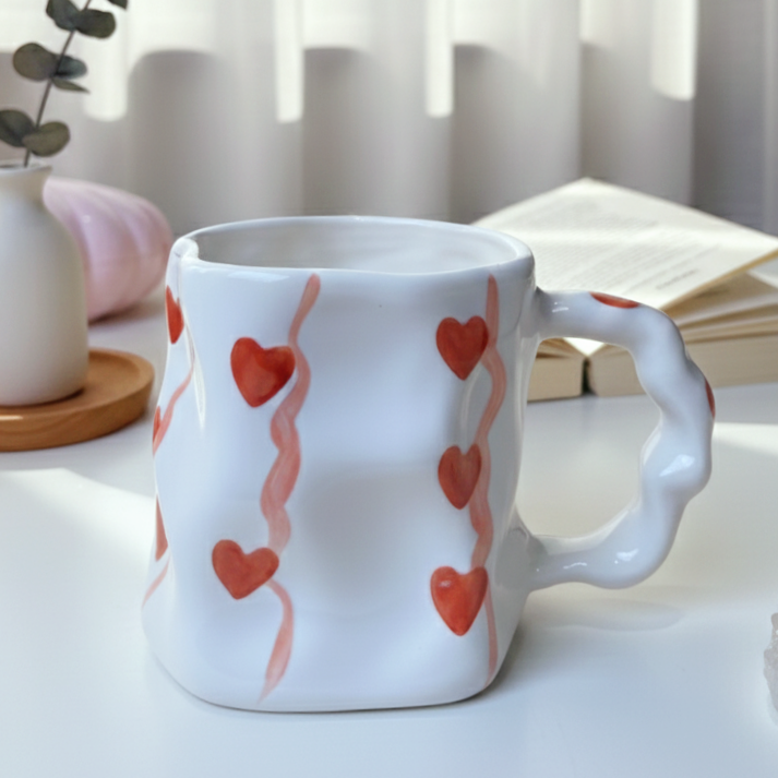 مج رقيق بتعرّجات ناعمة ورسومات لطيفة بتدي إحساس بالانسياب والراحة