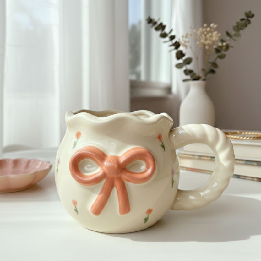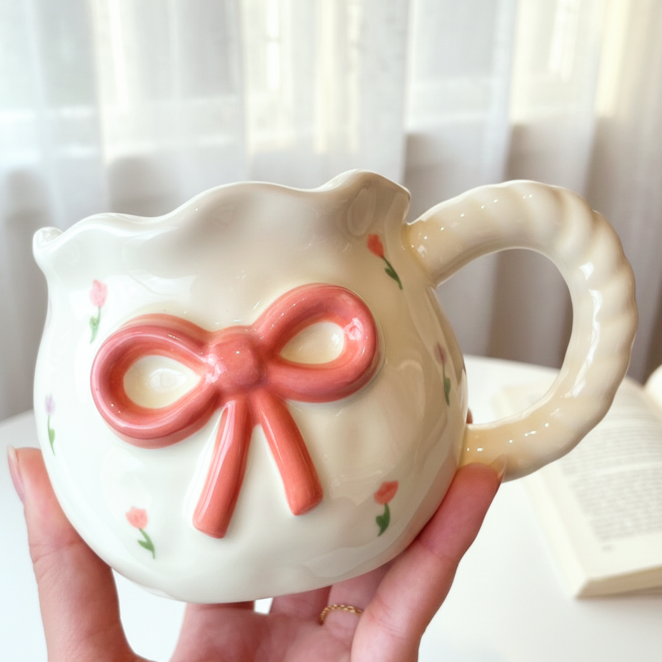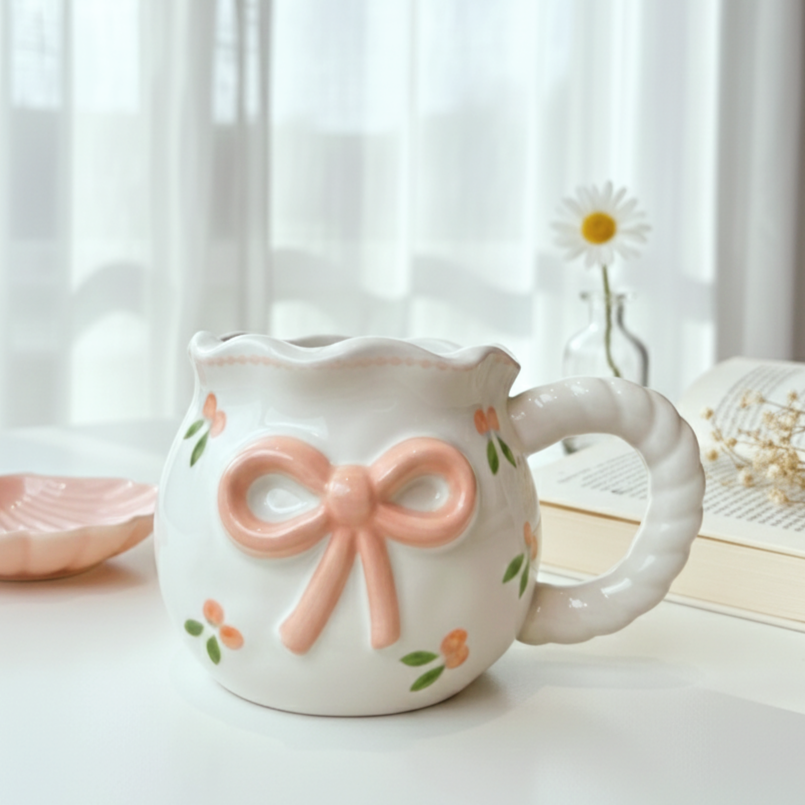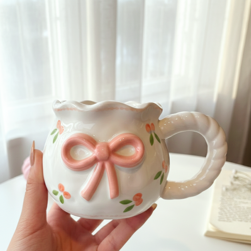 مج كيوت عليه فيونكة بارزة ورسومات ورد رقيقة