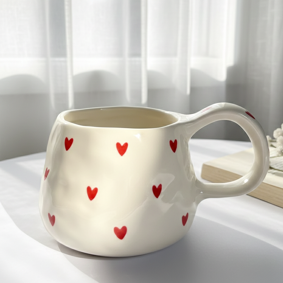 مج مميز مرسوم عليه رسومات قلب صغيرة شكله رقيق ومميز