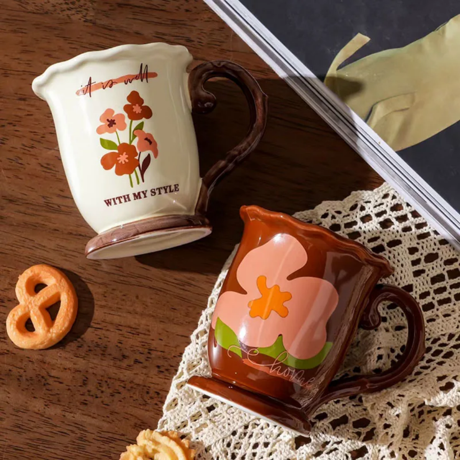 مج ڤينتچ رقيق بشكل شيك وأنيق بألوان هادية ورسومات ورد مميزة