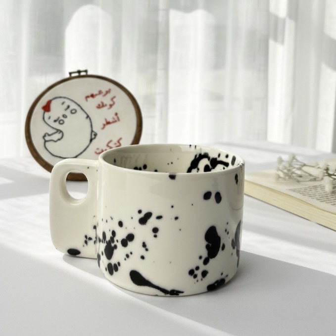 مج كلاسيك بيد مستطيلة بيجمع بين الأبيض والأسود بشكل أنيق