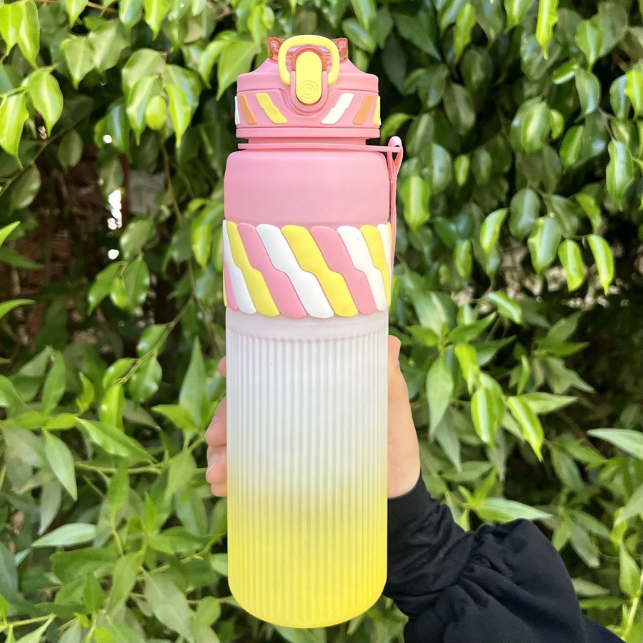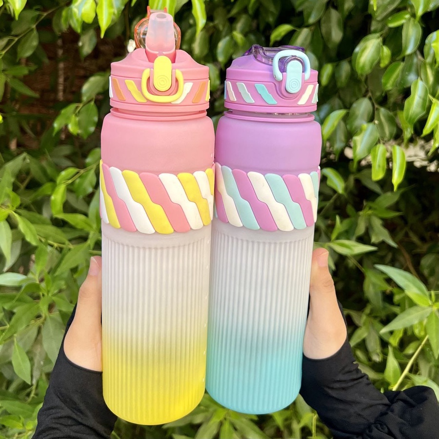 تميّزي كل يوم بزجاجة candy بتصميمها المرح وألوانها الباستيل الجذابة زجاجة مياه بسعة 1 لتر، مثالية للترطيب طول اليوم سواء في الشغل، التمرين، أو الجامعة