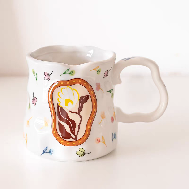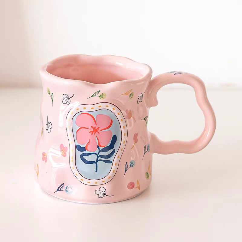 مج مزخرف بنقوش ورود كلاسيكية وتصميم أنثوي وشيك متوفر بألوان هادئة ومناسب للاستخدام اليومي